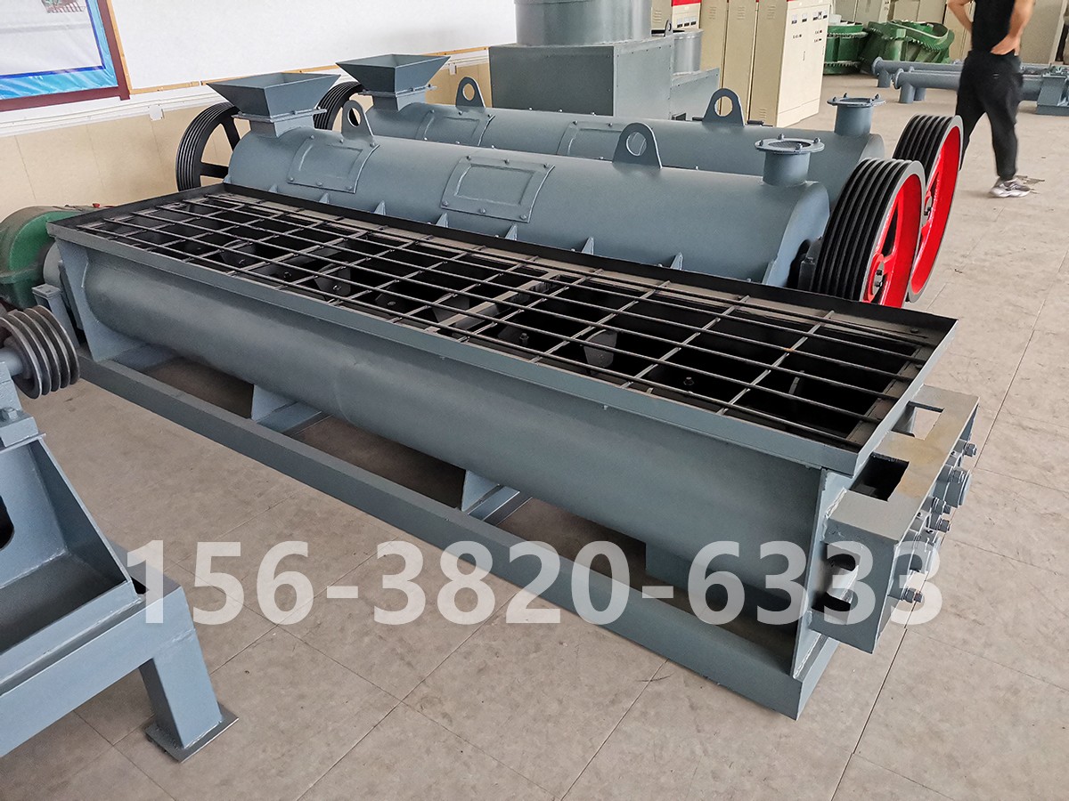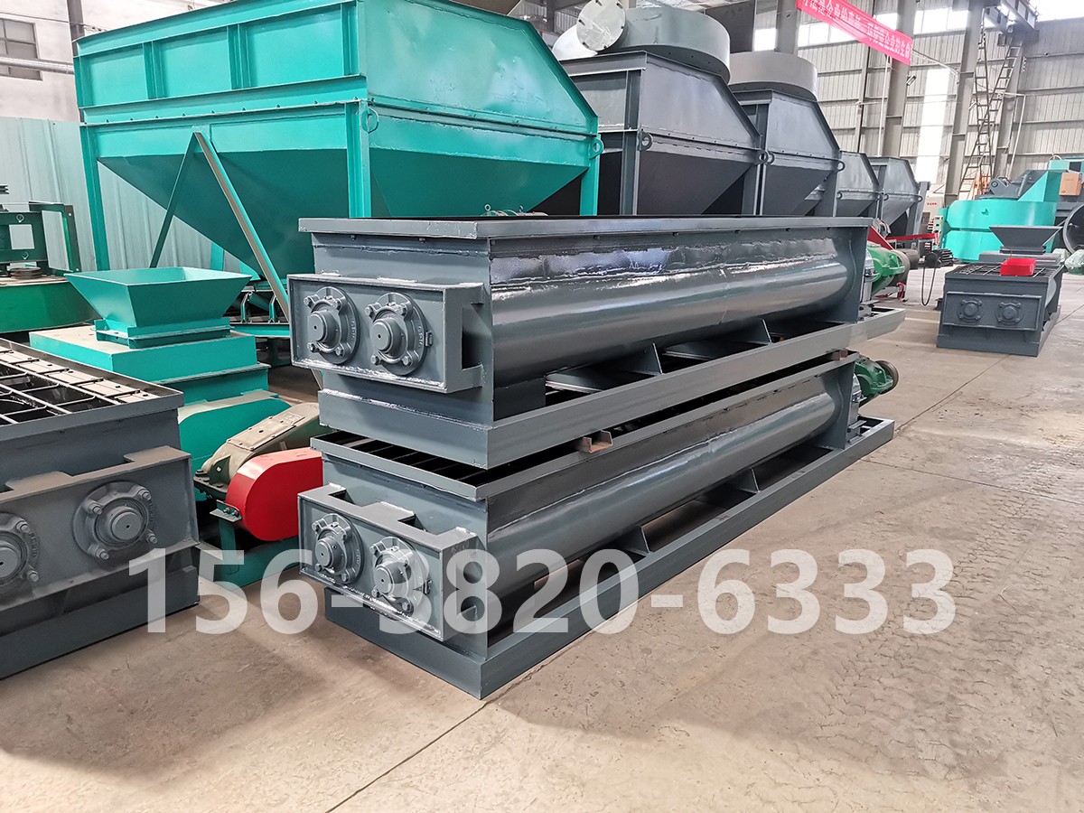 工作原理:當(dāng)干粉狀物料由給料機(jī)定量通過進(jìn)料口均勻進(jìn)入槽體后,動(dòng)力傳動(dòng)機(jī)械帶動(dòng)裝有多組葉片的螺旋形主軸轉(zhuǎn)動(dòng),通過對(duì)嚙合傳動(dòng)齒輪帶動(dòng)被動(dòng)螺旋軸與主軸作等速相對(duì)轉(zhuǎn)動(dòng),從而使物料被攪和和并推進(jìn)至槽體加濕段,在物料被推進(jìn)至加濕段后,加濕器自動(dòng)對(duì)物料進(jìn)行噴濕,進(jìn)而至槽體后攪拌段進(jìn)行充分?jǐn)嚭停?dāng)物料達(dá)到可控濕度后由出料口卸出,進(jìn)入下一道工序。